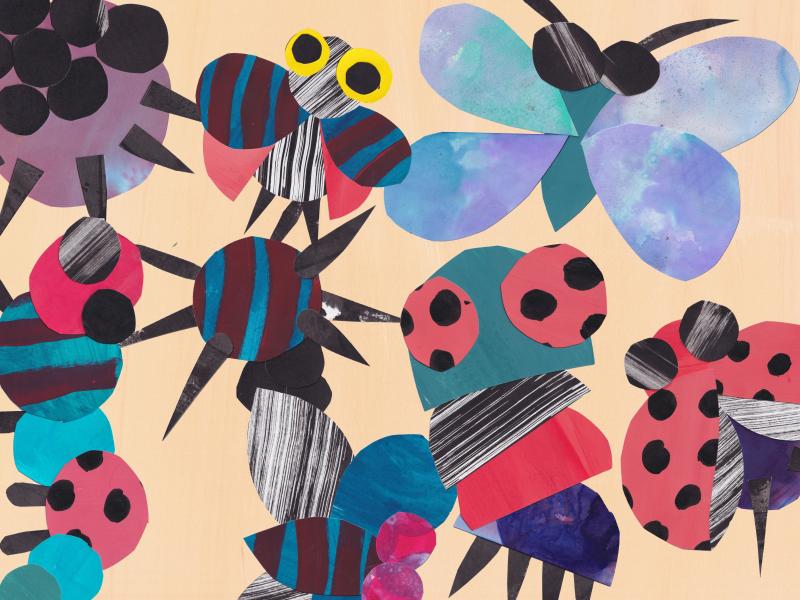 Workshoppen starter med en højtlæsning af billedbogen ”Kari Kakerlak – Vågn op, brormand!” der er fyldt med rim, lydord og farverige collager. Derefter dykker vi ned i den summende insektverden i en kreativ collageworkshop, hvor børnene (2–6 år) skaber deres egne fantasifulde småkravl med papir, lim, vinger og følehorn.