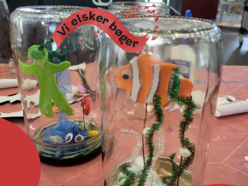 Som optakt til vores børnefestival "Vi elsker bøger", hvor temaet er Van(D)vittig viden om havet, holder vi "Lav dit eget syltetøjsakvarie"-workshop her på Vigerslev bibliotek.